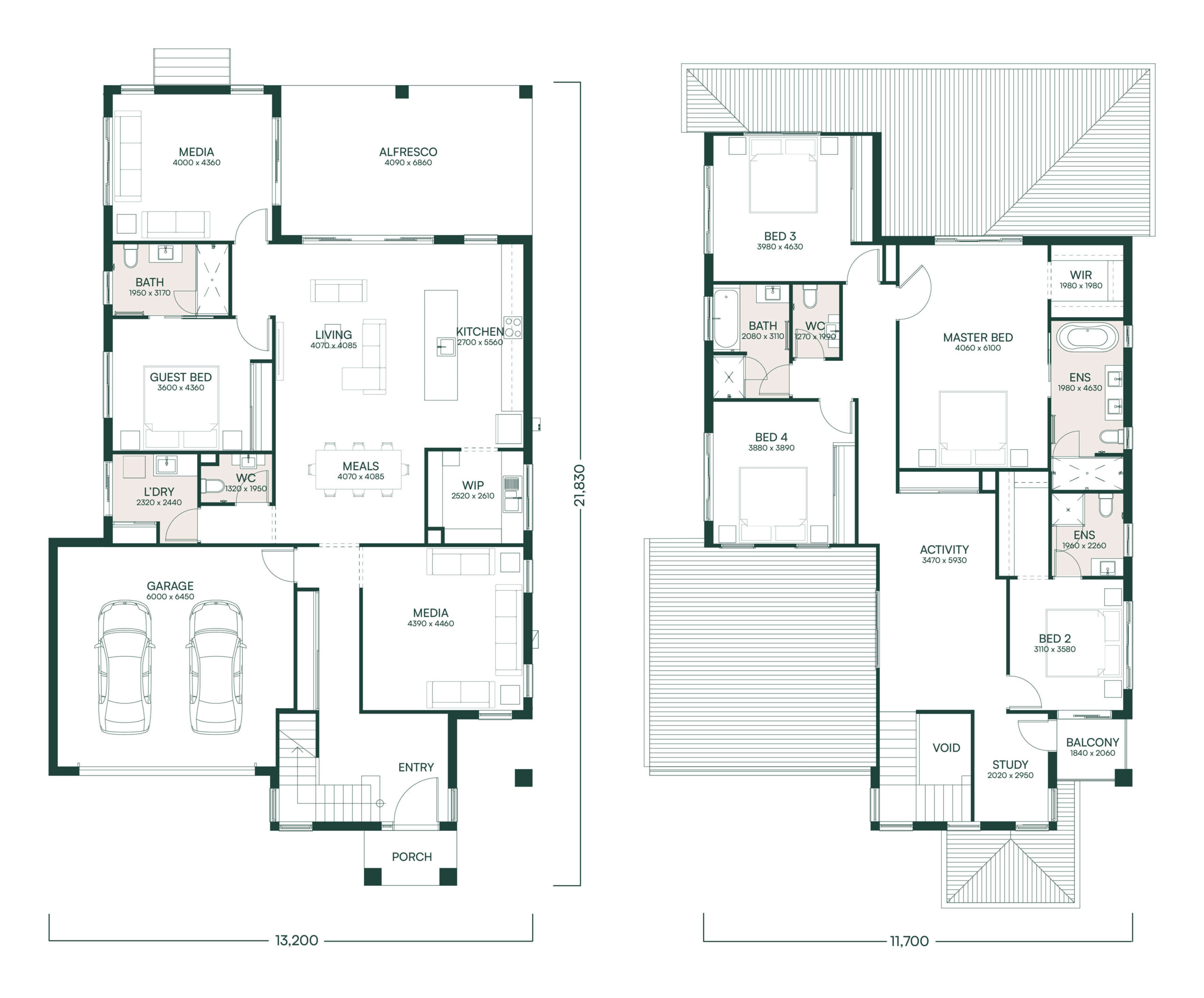 Our Katherine design is approx 403sqm, 5 bedrooms with a dedicated media room, open plan living and under cover alfresco.