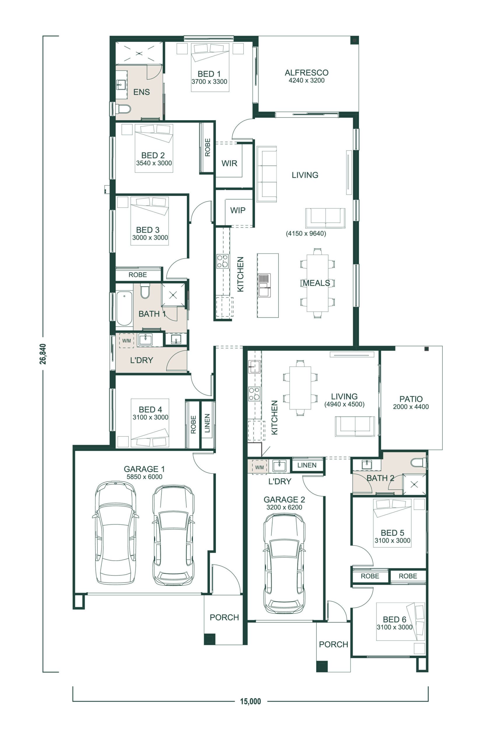 Dual Living Area offers Bedrooms 5 and 6 , Living , Kitchen , Bathroom , Laundry , Patio , Single Garage and Separate Entry .