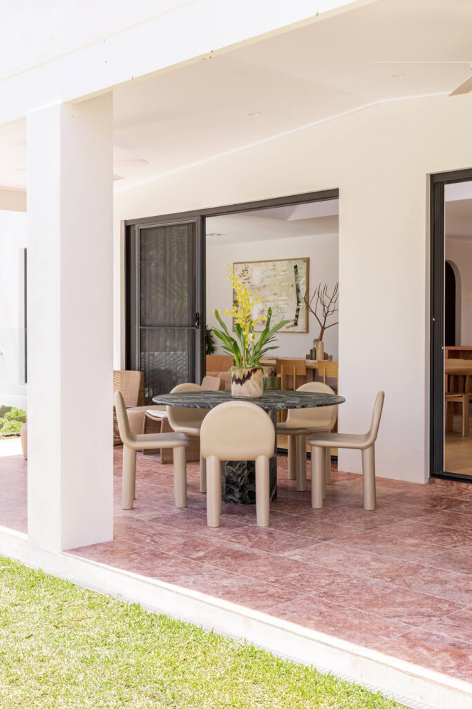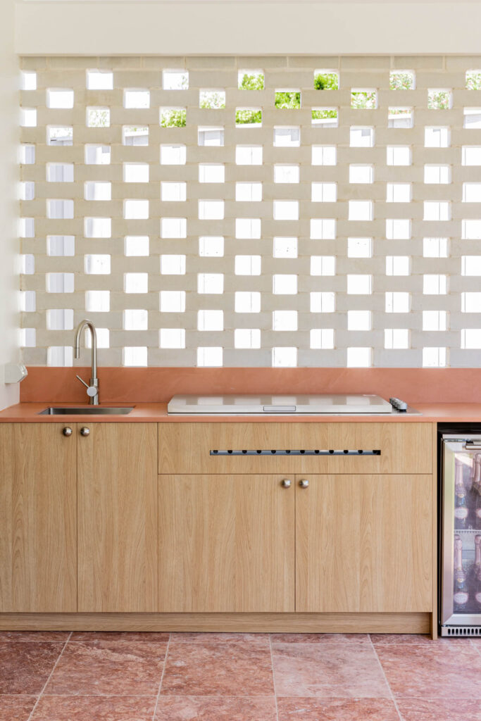 Whether it’s a tiled bench, weatherproof cushions or a feature wall, a bold colour moment outdoors can bring surprising energy without overwhelming the space. Colour is also returning to hardware and finishes — think coloured tiles, powder-coated metal details, and mix-and-match accessories that add depth and dimension.